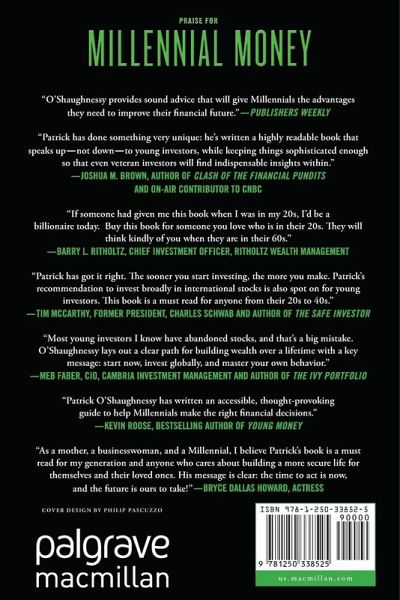 Fact: the Millennial Generation will not be able to rely on pensions and social security in retirement. Instead, they will have to save and invest in the global stock market to meet their goals. When it comes to thinking about money, Millennials are, as a generation, different from their parents. They are skeptical of expert advice, yet more committed than baby boomers to passing wealth on to future generations. To build wealth, young people must start investing early and buck conventional market wisdom. Millennial Money will explain the most common mistakes that hurt investors' long-term returns and show why their investments in popular stocks or the hottest industry of the day have resulted in such underwhelming results. More importantly, the book will introduce a strategy that can help us overcome our shortcomings as investors. Armed with this strategy, Millennials can become the most successful investing generation in history.