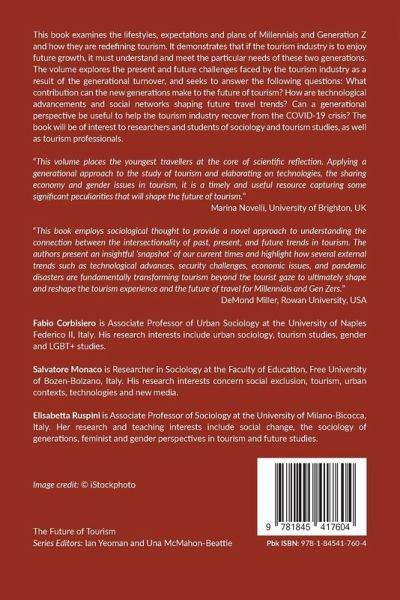 This book examines the lifestyles, expectations and plans of Millennials and Generation Z and how they are redefining tourism. It explores the present and future challenges faced by the tourism industry as a result of the generational turnover and the role a generational perspective can play in helping the industry recover from the COVID-19 crisis.