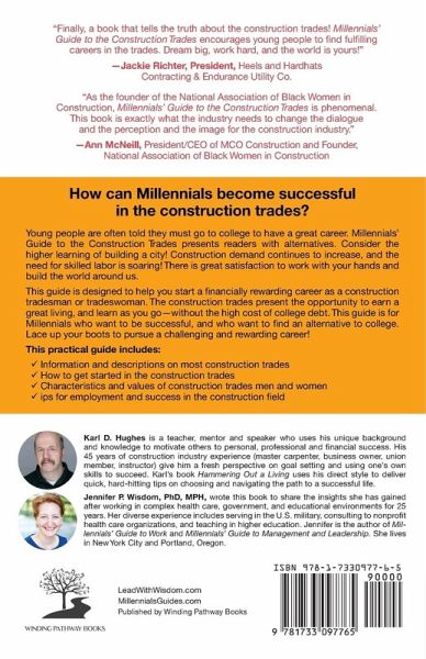How can Millennials become successful in the construction trades? Young people are often told they must go to college to have a great career. Millennials' Guide to the Construction Trades presents readers with alternatives. Consider the higher learning of building a city! Construction demand continues to increase, and the need for skilled labor is soaring! There is great satisfaction to work with your hands and build the world around us. This guide is designed to help you start a financially rewarding career as a construction tradesman or tradeswoman. The construction trades present the opportunity to earn a great living, and learn as you go-without the high cost of college debt. This guide is for Millennials who want to be successful, and who want to find an alternative to college. Lace up your boots to pursue a challenging and rewarding career! This practical guide includes: - Information and descriptions on most construction trades - How to get started in the construction trades - Characteristics and values of construction trades men and women - ips for employment and success in the construction field