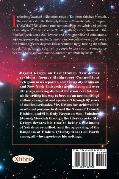 In the long-awaited millennium reign of Emperor Yahshua Messiah, the elect worship the Heavenly Father as Yahweh Elohim, the great I Am That I Am. Yet sin runs rampant from the words and actions of unbelievers. They force the final conflict, as prophesized in the Book of Revelation 20:7-8, and through trials and tribulations, joys and prosperity, and banishments and executions of one thousand years, the Prince of Peace decrees His servants to fight, forcing the saints to ask, "Does Yahshua desire His people to carry out the vengeance believed to be Yahweh's alone? And can we fulfill His will?"
