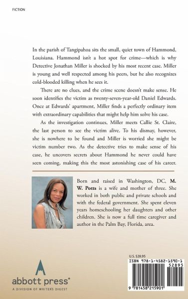 In the parish of Tangipahoa sits the small, quiet town of Hammond, Louisiana. Hammond isn't a hot spot for crime-which is why Detective Jonathan Miller is shocked by his most recent case. Miller is young and well respected among his peers, but he also recognizes cold-blooded killing when he sees it. There are no clues, and the crime scene doesn't make sense. He soon identi¿es the victim as twenty-seven-year-old Daniel Edwards. Once at Edwards' apartment, Miller ¿nds a perfectly ordinary item with extraordinary capabilities that might help him solve his case. As the investigation continues, Miller meets Callie St. Claire, the last person to see the victim alive. To his dismay, however, she is nowhere to be found and Miller is worried she might be victim number two. As the detective tries to make sense of his case, he uncovers secrets about Hammond he never could have seen coming, making this the most astonishing case of his career.