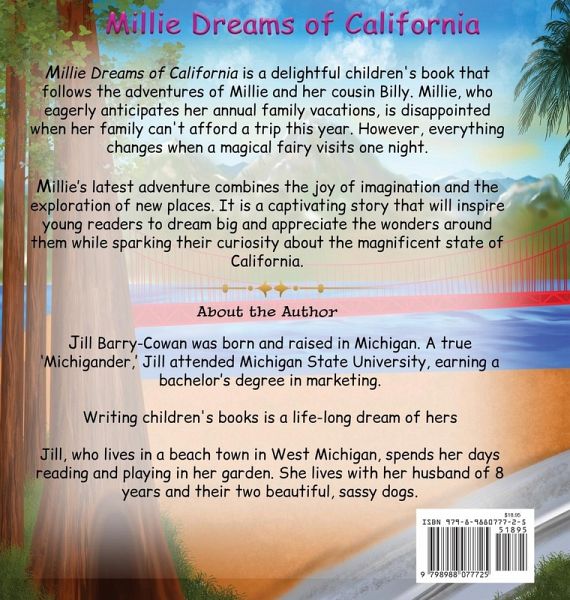 Millie Dreams of California is a delightful children's book that follows the adventures of Millie and her cousin Billy. Millie, who eagerly anticipates her annual family vacations, is disappointed when her family can't afford a trip this year. However, everything changes when a magical fairy visits one night. Millie's latest adventure combines the joy of imagination and the exploration of new places. It is a captivating story that will inspire young readers to dream big and appreciate the wonders around them while sparking their curiosity about the magnificent state of California.