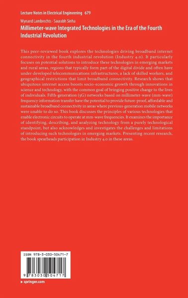 This peer-reviewed book explores the technologies driving broadband internet connectivity in the fourth industrial revolution (Industry 4.0). It particularly focuses on potential solutions to introduce these technologies in emerging markets and rural areas, regions that typically form part of the digital divide and often have under-developed telecommunications infrastructures, a lack of skilled workers, and geographical restrictions that limit broadband connectivity. Research shows that ubiquitous internet access boosts socio-economic growth through innovations in science and technology, with the common goal of bringing positive change to the lives of individuals. Fifth-generation (5G) networks based on millimeter-wave (mm-wave) frequency information transfer have the potential to provide future-proof, affordable and sustainable broadband connectivity in areas where previous-generation mobile networks were unable to do so. This book discusses the principles of various technologies that enable electronic circuits to operate at mm-wave frequencies. It examines the importance of identifying, describing, and analyzing technology from a purely technological standpoint, but also acknowledges and investigates the challenges and limitations of introducing such technologies in emerging markets. Presenting recent research, the book spearheads participation in Industry 4.0 in these areas.