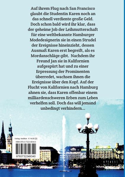 Auf ihrem Flug nach San Francisco glaubt die Studentin Karen noch an das schnell verdiente große Geld. Schon bald ahnt sie, dass der geheime Job der Leihmutterschaft für eine prominente Frau sie in einen Strudel der Ereignisse hineinzieht, dessen Ausmaß sie erst begreift, als es Mordanschläge gibt. Nachdem ihr Freund Jan sie in Kalifornien aufgespürt hat und sie zu einer Erpressung der Prominenten überredet, wachsen ihnen die Ereignisse über den Kopf, und sie ahnen auf der Flucht von Kalifornien nach Hamburg, dass Karen offenbar einem milliardenschweren Erben zum Leben verhelfen soll. Doch das will jemand unbedingt verhindern...