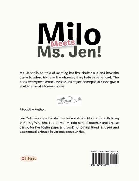 Ms. Jen tells her tale of meeting her first shelter pup and how she came to adopt him and the changes they both experienced. The book attempts to create awareness of just how special it is to give a shelter animal a forever home.
