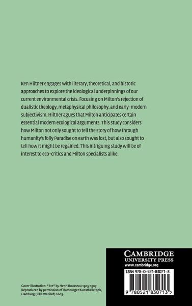 In Milton and Ecology, Ken Hiltner engages with literary, theoretical, and historic approaches to explore the ideological underpinnings of our current environmental crisis. Focusing on Milton's rejection of dualistic theology, metaphysical philosophy, and early-modern subjectivism, Hiltner argues that Milton anticipates certain essential modern ecological arguments. Even more remarkable is that Milton was able to integrate these arguments with biblical sources so seamlessly that his interpretative 'Green' reading of scripture has for over three centuries been entirely plausible. This study considers how Milton, from the earliest edition of the Poems, not only sought to tell the story of how through humanity's folly Paradise on earth was lost, but also sought to tell how it might be regained. This intriguing study will be of interest to eco-critics and Milton specialists alike.