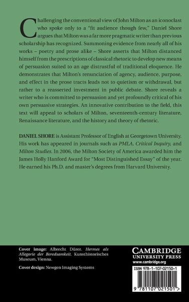 This book argues that Milton used innovative and cunning means to persuade readers in an age distrustful of traditional rhetoric.