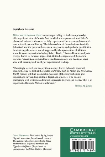 Karen Edwards offers a fresh view of Paradise Lost, in which Milton is shown to represent Eden's plants and animals in the light of the century's new, scientific natural history as it emerged in the work of his contemporaries including Robert Boyle, Thomas Browne and John Evelyn.