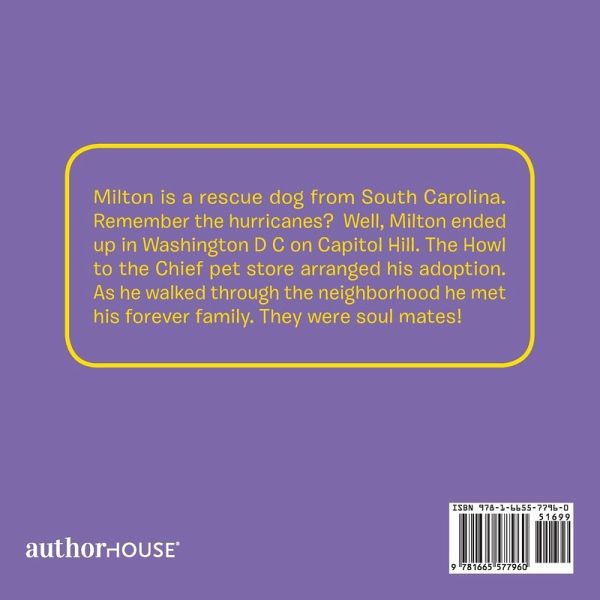 Milton is a rescue dog from South Carolina. Remember the hurricanes? Well, Milton ended up in Washington D C on Capitol Hill. The Howl to the Chief pet store arranged his adoption. As he walked through the neighborhood he met his forever family. They were soul mates!