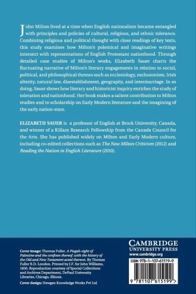 John Milton lived at a time when English nationalism became entangled with principles and policies of cultural, religious, and ethnic tolerance. Combining political theory with close readings of key texts, this study examines how Milton's polemical and imaginative literature intersects with representations of English Protestant nationhood. Through detailed case studies of Milton's works, Elizabeth Sauer charts the fluctuating narrative of Milton's literary engagements in relation to social, political, and philosophical themes such as ecclesiology, exclusionism, Irish alterity, natural law, disestablishment, geography, and intermarriage. In so doing, Sauer shows the extent to which nationhood and toleration can be subjected to literary and historicist inquiry. Her study makes a salient contribution to Milton studies and to scholarship on early modern literature and the development of the early nation-state.