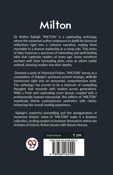 Sir Walter Raleigh "MILTON" is a captivating anthology where the esteemed author endeavors to distill his historical reflections right into a cohesive narrative, making them reachable to a diverse readership at a cheap rate. This series of tales traverses a spectrum of interesting and spell binding tales that captivate readers of every age. Some narratives enchant with their fascinating plots, even as others subtly enthrall, drawing readers into their depths. Deemed a work of Historical Fiction, "MILTON" serves as a compilation of Raleigh's profound ancient musings, skillfully interwoven right into an unmarried, comprehensive draft. The anthology has proven to be a reservoir of compelling thoughts that resonate with readers across generations. With a fresh and captivating cover layout, coupled with a professionally typeset manuscript, this edition of "MILTON" seamlessly blends contemporary aesthetics with clarity, enhancing the overall reading experience. Raleigh's masterful storytelling and the amalgamation of numerous historic views in "MILTON" make it a timeless collection, inviting readers to immerse themselves within the richness of historic fiction woven with literary finesse.