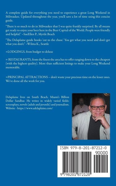 A complete guide for everything you need to experience a great Long Weekend in Milwaukee. Updated throughout the year, you'll save a lot of time using this concise guide. "There is so much to do in Milwaukee that I was quite frankly surprised. By all means get ready to enjoy your beer here in the Beer Capital of the World. People were friendly and helpful." –SueEllen P., Myrtle Beach "The Delaplaine guide books 'cut to the chase.' You get what you need and don't get what you don't." –Wilma K., Seattle =LODGINGS, from budget to deluxe = RESTAURANTS, from the finest the area has to offer ranging down to the cheapest (with the highest quality). More than sufficient listings to make your Long Weekend memorable. =PRINCIPAL ATTRACTIONS -- don't waste your precious time on the lesser ones. We've done all the work for you.