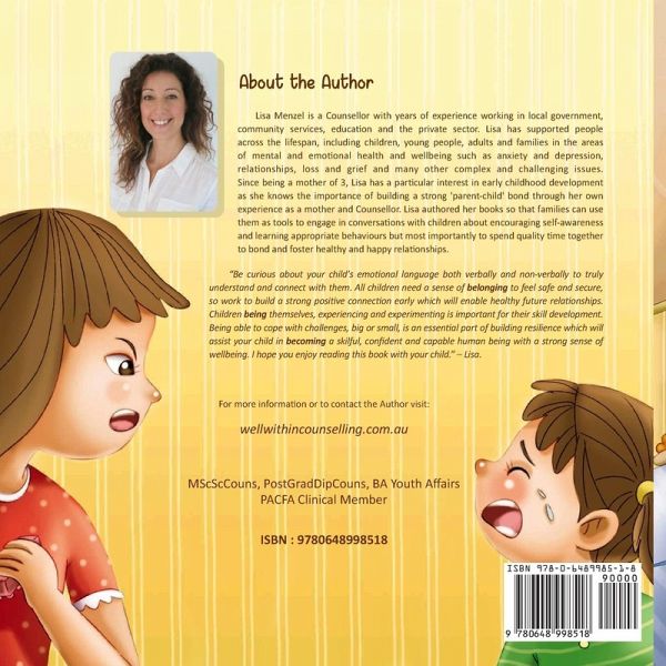 This book is part of a series that helps families explore childhood social - emotional development. It is important for children to learn positive and appropriate problem-solving & coping skills so they can grow and develop into highly functioning adults. As children grow and develop they learn their social interaction and coping skills within the family unit before testing them in their wider network, such as with their friends at school. Therefore, it is important that as parents, we can provide good role modelling and guidance in a positive and safe environment so that children can assess for themselves how to behave appropriately and cope with life's challenges. These are life-long skills so it is important to teach children early. Lisa authored her books so that families can use them as tools to engage in conversations with children about encouraging self-awareness and learning appropriate coping behaviours but most importantly to spend quality time together to bond and foster healthy and happy relationships.