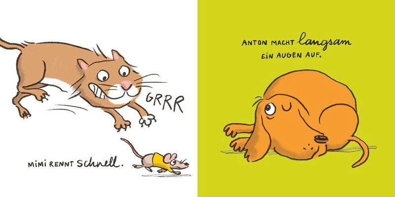 Mimi ist klein, Anton ist groß. Trotzdem werden die Maus und der Hund beste Freunde. Auf dem Bauernhof gibt es nämlich noch Kitty, die Katze. Und vor der muss Mimi sich schnell verstecken. Vielleicht in Antons Hundehütte?