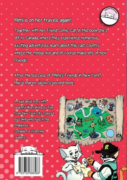 Mimi is on her travels again! Together with her friend Comic Cat, in this book she's off to Canada, where they experience numerous exciting adventures, learn about this vast country where the moose live and of course make lots of new friends! After the success of "Mimi's Friends in New York", this is Maren Jäckel's second book. A read aloud story with beautiful illustrations by Rolo from New York City, colored by Edwin, who lives in the Philippines. Suitable for first time readers.Originalfassung der deutschen Ausgabe: Mimi ist wieder unterwegs! Gemeinsam mit ihrem Freund Comic Cat geht es in diesem Buch nach Kanada, wo die beiden zahlreiche spannende Abenteuer erleben, etwas über das große Land mit den Elchen lernen und natürlich viele neue Freunde finden. Nach dem Erfolg von "Mimis Freunde in New York" ist dies das zweite Buch von Maren Jäckel. Eine Vorlesegeschichte mit wunderschönen Illustrationen von Rolo aus New York, koloriert von Edwin, der auf den Philippinen lebt. Für Erstleser geeignet.