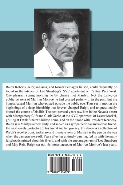 Ralph Roberts writes about his friendship with Marilyn Monroe and the events and people in her life leading up to her untimely demise. Ralph focuses on the wonderful and complex person she was when the cameras were off.
