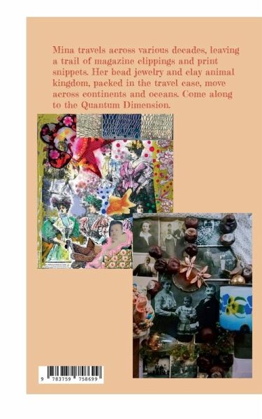 Mina travels across various decades, leaving a trail of magazine clippings and print snippets. Her bead jewelry and clay animal kingdom, packed in the travel case, move across continents and oceans. Come along to the Quantum Dimension.