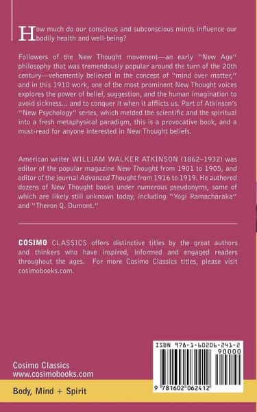 How much do our conscious and subconscious minds influence our bodily health and well-being? Followers of the New Thought movement-an early "New Age" philosophy that was tremendously popular around the turn of the 20th century-vehemently believed in the concept of "mind over matter," and in this 1910 work, one of the most prominent New Thought voices explores the power of belief, suggestion, and the human imagination to avoid sickness... and to conquer it when it afflicts us. Part of Atkinson's "New Psychology" series, which melded the scientific and the spiritual into a fresh metaphysical paradigm, this is a provocative book, and a must-read for anyone interested in New Thought beliefs. American writer WILLIAM WALKER ATKINSON (1862-1932) was editor of the popular magazine New Thought from 1901 to 1905, and editor of the journal Advanced Thought from 1916 to 1919. He authored dozens of New Thought books under numerous pseudonyms, some of which are likely still unknown today, including "Yogi Ramacharaka" and "Theron Q. Dumont."