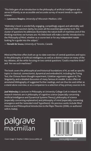'Walmsley's book is wonderfully engaging, compellingly argued, and admirably well informed. With succinct clarity, he covers all the essential approaches to AI. The cluster of questions he addresses illuminates the nature both of machines and of the thinking machines we humans are. His little book will make a terrific introduction to the Philosophy of Mind, whether as a course text or for any independent reader looking for a guide into the subject.' - Ronald de Sousa, University of Toronto, Canada