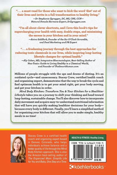Millions of people struggle with the ups and downs of dieting. It's an outdated cycle-and unnecessary. Stacey Crew, certified health coach and organizing expert, demonstrates that the way to break the cycle and find optimum health is to get your mind right, get your body moving, and get your kitchen in order. Mind Body Kitchen: Transform You & Your Kitchen for a Healthier Lifestyle takes you on a journey to shift your thinking and head toward long-lasting, sustainable change. You'll also discover how to incorporate daily movement and acquire easy-to-understand nutritional information that will have you quickly making healthier decisions for your body-because every body is different. Finally, you'll learn a simplified method for organizing your kitchen that will allow you to make simple, healthy meals in no time!