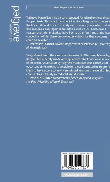 'Palgrave Macmillan is to be congratulated for reissuing these classic Bergson texts. This is a timely decision since Bergson was the great thinker of life and it seems, nearly one hundred years later, that we find ourselves once again required to conceive life. Keith Ansell Pearson and John Mullarkey have been at the forefront of the new conception of life, therefore no better editors for these volumes could be selected.' - Professor Leonard Lawlor, Department of Philosophy, University of Memphis, USA