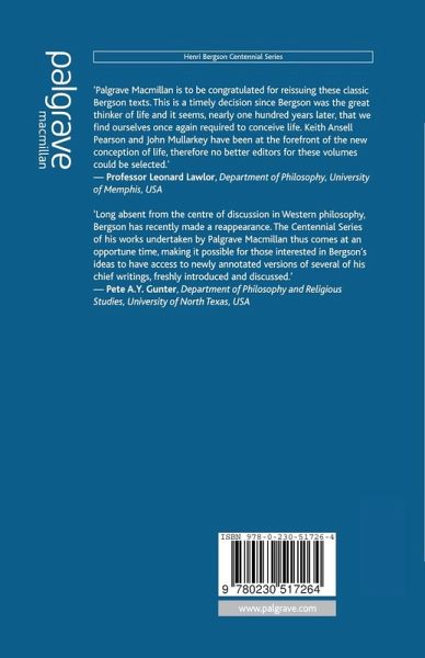 'Palgrave Macmillan is to be congratulated for reissuing these classic Bergson texts. This is a timely decision since Bergson was the great thinker of life and it seems, nearly one hundred years later, that we find ourselves once again required to conceive life. Keith Ansell Pearson and John Mullarkey have been at the forefront of the new conception of life, therefore no better editors for these volumes could be selected.' - Professor Leonard Lawlor, Department of Philosophy, University of Memphis, USA