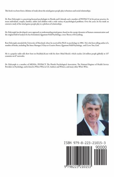 This book was born from a lifetime of study about the mind games people play in business and social relationships. Dr. Ron Dalrymple is a practicing licensed psychologist in Florida and Colorado and a meber of PSYPACT. In his private practice, he treats individuals, couples, families, adults and children with a wide variety of psychological problems. Over the years, he has made an extensive study of the mind games people play in a plethora of relationships. Dr. Dalrymple has developed a new approach to the understanding of mind games, based on the energy dynamics of human communication and the original field of analysis he has formulated, which he coins, Quantum Field Psychology. He describes this field as "the multidimensional, relativistic analysis of human energy dynamics." Using his background in mathematics and psychology, he set out to discover the hidden laws of the physics of the mind and has come up with a formulation that is a true Theory of Everything. He has applied this novel and insightful form of analysis to the issue of mind games, often with surprising results. Ron Dalrymple attended the University of Maryland, where he received his Ph.D. in psychology in 1984. His doctoral dissertation was on creativity development. He was the recipient of The Maryland Fellowship, awarded to ten students per year in the state of Maryland. He is the author of a number of books, including The Inner Manager, 8 Days to Creative Power, Quantum Field Psychology, I Love You, God, as well as the popular lay psychology newspaper column on the Eastern Shore of Maryland, "The Voice Within." He is a popular radio show host on HealthyLife.net with his show Mind Shock!, which reaches 2.6 million people globally in 137 countries on 67 networks. Dr. Dalrymple is a member of MENSA, a former member of The American Psychological Association, The Maryland Psychological Association and many others. He is currently a member of The Florida Psychological Association, The National Register of Health Service Providers in Psychology, and is listed in Who's Who in U.S. Authors and Writers, and many other Who's Who.