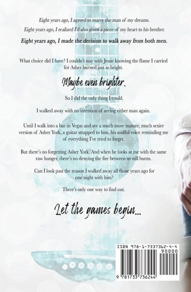 Eight years ago, I agreed to marry the man of my dreams. Eight years ago, I realized I’d also given a piece of my heart to his brother. Eight years ago, I made the decision to walk away from both men. What choice did I have? I couldn’t stay with Jessie knowing the flame I carried for Asher burned just as bright. Maybe even brighter. So I did the only thing I could. I walked away with no intention of seeing either man again. Until I step into a bar in Vegas and see a much more mature, much sexier version of Asher York, a guitar strapped to him, his soulful voice reminding me of everything I’ve tried to forget. But there’s no forgetting Asher York. And when he looks at me with the same raw hunger, there’s no denying the fire between us still burns. Can I look past the reason I left all those years ago for one night with him? There’s only one way to find out. Let the games begin.