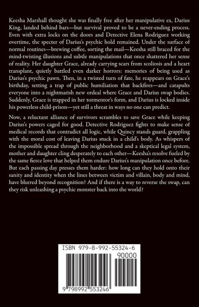 Keesha Marshall thought she was finally free after her manipulative ex, Darius King, landed behind bars-but survival proved to be a never-ending process. Even with extra locks on the doors and Detective Elena Rodriguez working overtime, the specter of Darius's psychic hold remained. Under the surface of normal routines-brewing coffee, sorting the mail-Keesha still braced for the mind-twisting illusions and subtle manipulations that once shattered her sense of reality. Her daughter Grace, already carrying scars from scoliosis and a heart transplant, quietly battled even darker horrors: memories of being used as Darius's psychic pawn. Then, in a twisted turn of fate, he reappears on Grace's birthday, setting a trap of public humiliation that backfires-and catapults everyone into a nightmarish new ordeal. Now, a reluctant alliance of survivors scrambles to save Grace while keeping Darius's powers caged for good. Detective Rodriguez fights to make sense of medical records that contradict all logic, while Quincy stands guard, grappling with the moral cost of leaving Grace. As whispers of the impossible spread through the neighborhood and a skeptical legal system, mother and daughter cling desperately to each other-Keesha's resolve fueled by the same fierce love that helped them endure Darius's manipulation once before. But each passing day presses them harder: how long can they hold onto their sanity and identity when the lines between victim and villain, body and mind, have blurred beyond recognition? And if there is a way to reverse what has happened, can they risk unleashing a psychic monster back into the world?