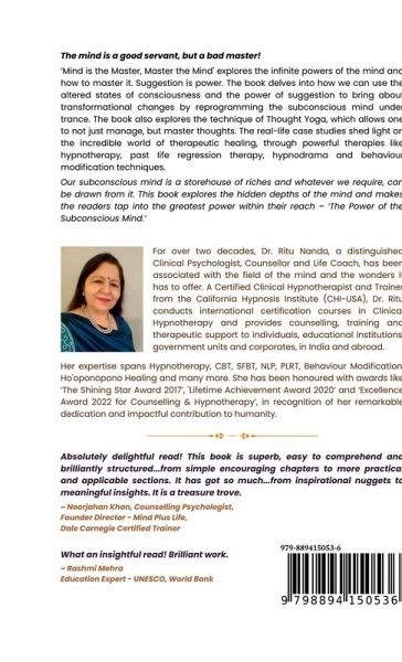 The mind is a good servant, but a bad master! 'Mind is the Master, Master the Mind' explores the infinite powers of the mind and how to master it. Suggestion is power. The book delves into how we can use the altered states of consciousness and the power of suggestion to bring about transformational changes by reprogramming the subconscious mind under trance. The book also explores the technique of Thought Yoga, which allows one to not just manage, but master thoughts. The real-life case studies shed light on the incredible world of therapeutic healing, through powerful therapies like hypnotherapy, past life regression therapy, hypnodrama and behaviour modification techniques. Our subconscious mind is a storehouse of riches and whatever we require, can be drawn from it. This book explores the hidden depths of the mind and makes the readers tap into the greatest power within their reach - 'The Power of the Subconscious Mind.'