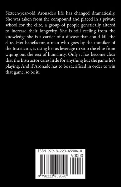 Sixteen-year-old Aronade's life has changed dramatically. She was taken from the compound and placed in a private school for the elite, a group of people genetically altered to increase their longevity. She is still reeling from the knowledge she is a carrier of a disease that could kill the elite. Her benefactor, a man who goes by the moniker of the Instructor, is using her as leverage to stop the elite from wiping out the rest of humanity. Only it has become clear that the Instructor cares little for anything but the game he's playing. And if Aronade has to be sacrificed in order to win that game, so be it.