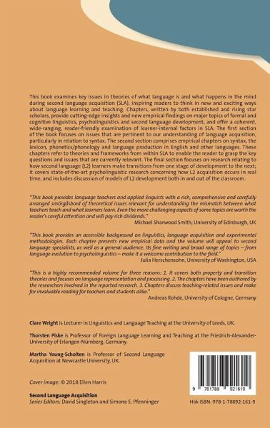 This book examines key issues in theories of what language is and what happens in the mind during second language acquisition. Chapters provide cutting-edge insights and new empirical findings spanning formal and cognitive linguistics, psycholinguistics and second language development, to understand the role of learner-internal factors in SLA.