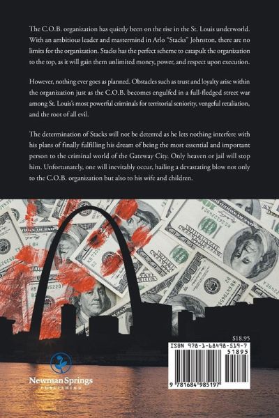 The C.O.B. organization has quietly been on the rise in the St. Louis underworld. With an ambitious leader and mastermind in Arlo "Stacks" Johnston, there are no limits for the organization. Stacks has the perfect scheme to catapult the organization to the top, as it will gain them unlimited money, power, and respect upon execution. However, nothing ever goes as planned. Obstacles such as trust and loyalty arise within the organization just as the C.O.B. becomes engulfed in a full-fledged street war among St. Louis's most powerful criminals for territorial seniority, vengeful retaliation, and the root of all evil. The determination of Stacks will not be deterred as he lets nothing interfere with his plans of finally fulfilling his dream of being the most essential and important person to the criminal world of the Gateway City. Only heaven or jail will stop him. Unfortunately, one will inevitably occur, hailing a devastating blow not only to the C.O.B. organization but also to his wife and children.