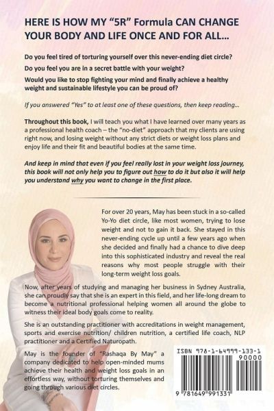 HERE IS HOW MY "5R" Formula CAN CHANGE YOUR BODY AND LIFE ONCE AND FOR ALL... Do you feel tired of torturing yourself over this never-ending diet circle? Do you feel you are in a secret battle with your weight? Would you like to stop fighting your mind and finally achieve a healthy weight and sustainable lifestyle you can be proud of? If you answered "Yes" to at least one of these questions, then keep reading... Did you know that an average 40- year old woman spends about 17 years of her life being "on a diet?" That means that almost half of their lives, women are watching their weight while trying not to gain an extra pound or two almost on a daily bases. Whether it is just simply avoiding so-called unhealthy foods like burgers, ice-cream, pizza, and so on, or jumping on a "real diet" like Keto, Vegan, Paleo, or any other trend that is popular out there. And still... Most of them fail to stay in their desired weight range and are not satisfied with what they see in the mirror. There must be a way to get out of this never-ending cycle! And there is... Throughout this book, I will teach you what I have learned over many years as a professional health coach - the "no-diet" approach that my clients are using right now, and losing weight without any strict diets or weight loss plans and enjoy life and their fit and beautiful bodies at the same time. Here is just a fraction of what's inside:My personal weight loss journey - and how I discovered this life-changing approach? My proven 5R formula which is not just easy to implement into your lifestyle right now, it's also effective in helping you effortlessly achieve your ideal body, and break the cycle of yo-yo dieting once and for all. Why most diets work only short term? Vegan vs. Keto, why non of these diets will help you get healthier? How to create a perfect environment that helps you keep with your idealy healthy weight? Probably the easiest way to overcome procrastination when getting in shape Some of the most important healthy lifestyle principles, and how do you effortlessly include in your daily routine? 6-steps to re-train your mind for a healthy and lean body Much much more... And keep in mind that even if you feel really lost in your weight loss journey, this book will not only help you to figure out how to do it but also it will help you understand why you want to change in the first place. Warning: This is NOT just another diet . . . This is Not just about losing weight . . . This is about changing the way you look at yourself. Changing your habits. Changing your belief system. Changing your inner dialog. Change your own self-worth . . . Simply because you're worth long-lasting results. I think you are ready to take one step further. So don't wait, scroll up, click on "Buy Now" and Start Reading!