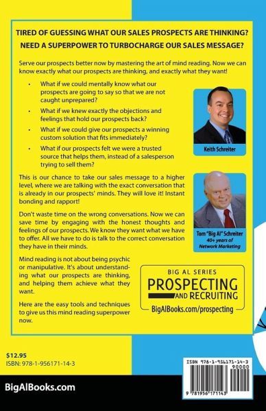Tired of guessing what our sales prospects are thinking? Need a superpower to turbocharge our sales message? Serve our prospects better now by mastering the art of mind reading. Now we can know exactly what our prospects are thinking, and exactly what they want! What if we could mentally know what our prospects are going to say so that we are not caught unprepared? What if we knew exactly the objections and feelings that hold our prospects back? What if we could give our prospects a winning custom solution that fits immediately? What if our prospects felt we were a trusted source that helps them, instead of a salesperson trying to sell them? This is our chance to take our sales message to a higher level, where we are talking with the exact conversation that is already in our prospects' minds. They will love it! Instant bonding and rapport! Don't waste time on the wrong conversations. Now we can save time by engaging with the honest thoughts and feelings of our prospects. We know they want what we have to offer. All we have to do is talk to the correct conversation they have in their minds. Mind reading is not about being psychic or manipulative. It's about understanding what our prospects are thinking and helping them achieve what they want. Here are the easy tools and techniques to give us this mind reading superpower now.