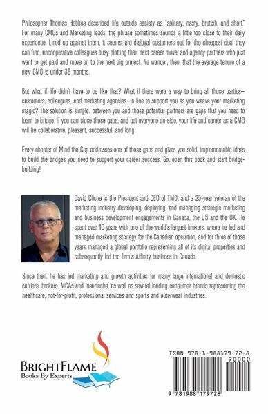 Philosopher Thomas Hobbes described life outside society as "solitary, nasty, brutish, and short." For many CMOs and Marketing leads, the phrase sometimes sounds a little too close to their daily experience. Lined up against them, it seems, are disloyal customers out for the cheapest deal they can find, uncooperative colleagues busy plotting their next career move, and agency partners who just want to get paid and move on to the next big project. No wonder, then, that the average tenure of a new CMO is under 36 months. But what if life didn't have to be like that? What if there were a way to bring all those parties-customers, colleagues, and marketing agencies-in line to support you as you weave your marketing magic? The solution is simple: between you and those potential partners are gaps that you need to learn to bridge. If you can close those gaps, and get everyone on-side, your life and career as a CMO will be collaborative, pleasant, successful, and long. Every chapter of Mind the Gap addresses one of those gaps and gives you solid, implementable ideas to build the bridges you need to support your career success. So, read this book and start bridge-building!