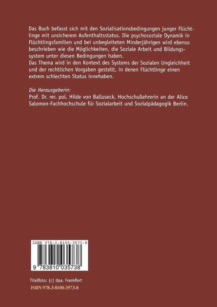 Das Buch befasst sich mit den Sozialisationsbedingungen junger Flüchtlinge mit unsicherem Aufenthaltsstatus. Die psychosoziale Dynamik in Flüchtlingsfamilien und bei unbegleiteten Minderjährigen wird ebenso beschrieben wie die Möglichkeiten, die Soziale Arbeit und Bildungssystem unter diesen Bedingungen haben. Das Thema wird in den Kontext des Systems Sozialer Ungleichheit und der juristischen Definitionen gestellt, in dem Flüchtlinge einen extrem schlechten Status innehaben.
