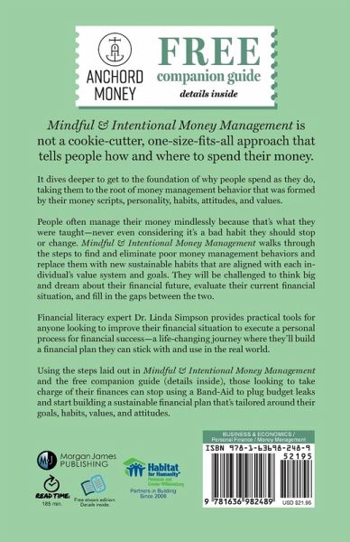 Encourages mindful and intentional money management. Explains how small tweaks and behavior changes can make a significant difference. Teaches how to plug those budget leaks that play havoc on your finances Helps reduce anxiety around facing money issues through development of a sustainable personal financial plan Challenges readers to improve their financial behavior so their life won't be the same 10, 20, 30 years from now Teaches readers how to identify emotional triggers and reduce the amount of spending decisions that are based on emotions Helps people determine where they want to go,…mehr