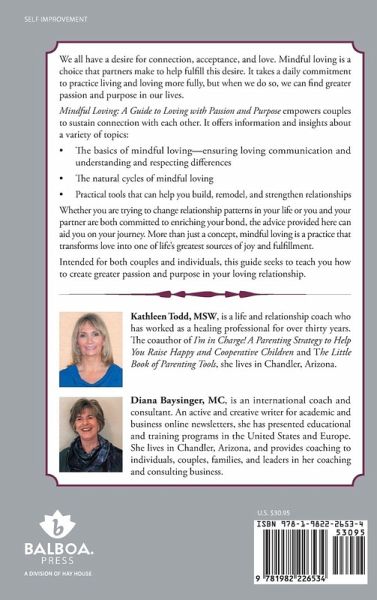 We all have a desire for connection, acceptance, and love. Mindful loving is a choice that partners make to help fulfill this desire. It takes a daily commitment to practice living and loving more fully, but when we do so, we can find greater passion and purpose in our lives. Mindful Loving: A Guide to Loving with Passion and Purpose empowers couples to sustain connection with each other. It offers information and insights about a variety of topics: ¿ The basics of mindful loving-ensuring loving communication and understanding and respecting differences ¿ The natural cycles of mindful loving ¿ Practical tools that can help you build, remodel, and strengthen relationships Whether you are trying to change relationship patterns in your life or you and your partner are both committed to enriching your bond, the advice provided here can aid you on your journey. More than just a concept, mindful loving is a practice that transforms love into one of life's greatest sources of joy and fulfillment. Intended for both couples and individuals, this guide seeks to teach you how to create greater passion and purpose in your loving relationship.