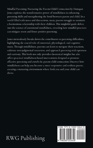 Mindful Parenting: Nurturing the Parent-Child Connection by Finnegan Jones explores the transformative power of mindfulness in enhancing parenting skills and strengthening the bond between parent and child. In a world filled with stress and distractions, many parents struggle to maintain a harmonious relationship with their children. This insightful guide delves into the science of attentional mindfulness, revealing how mindful practices can mitigate stress and foster positive parenting. Jones meticulously breaks down the contributors to parenting difficulties, highlighting the crucial role of emotional, physiological, and cognitive states. Through mindfulness, parents can learn to navigate their reactions, cultivate non-judgmental awareness, and approach parenting with openness and curiosity. This book not only provides theoretical insights but also offers practical mindfulness-based interventions designed to promote effective parenting and enrich the parent-child connection. Discover how mindfulness can help you become a more responsive and resilient parent, creating a nurturing environment where both you and your child can thrive.