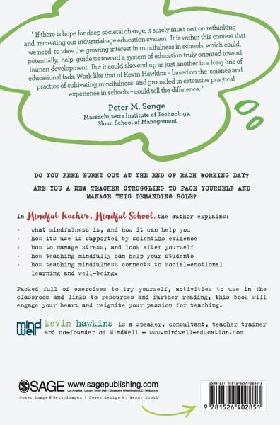 This is a book clearly written by an educator who knows mindfulness in schools from the inside. The strongest evidence for this is that Hawkins never gets carried away. He recognises that mindfulness is not a panacea, that to implement it successfully in schools is a slow and steady process, and that above all it must begin with the teachers themselves. But Hawkins also recognises how transformative mindfulness can be, having experienced it so profoundly himself as an educator in many different contexts. His anecdotes give it plenty of colour (my favourite is Billy and the Mosquito ), whilst the practical guidance Chapter 7 on implementation for example makes it of tremendous practical value. - Richard Burnett, Co-founder and Director, Mindfulness in Schools Project (MiSP)