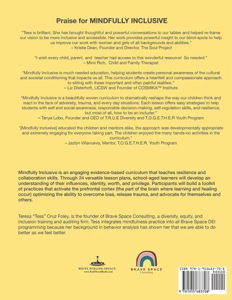 Build resilience and collaboration skills in your classroom or youth program with Mindfully Inclusive, an engaging evidence-based curriculum. This book contains 24 versatile lesson plans that will help school-aged learners to understand their influences, identity, worth, and privilege. With Mindfully Inclusive, participants will build a toolkit of mindfulness practices that activate the prefrontal cortex, optimizing their ability to overcome bias, release trauma, and effectively advocate for themselves and others. Benefits of reading Mindfully Inclusive include:Overcoming bias Engaging in practices proven to release trauma. Learning how to effectively advocate for yourself and others Creating more supportive and inclusive spaces. The book includes: 24 versatile lesson plans Evidence-based activities that optimize learning and growth An understanding of influences, identity, worth, and privilege Journal pages to copy or write-in This important resource will improve both the learning and teaching experience. Take advantage of this promotional price, available for a limited time!