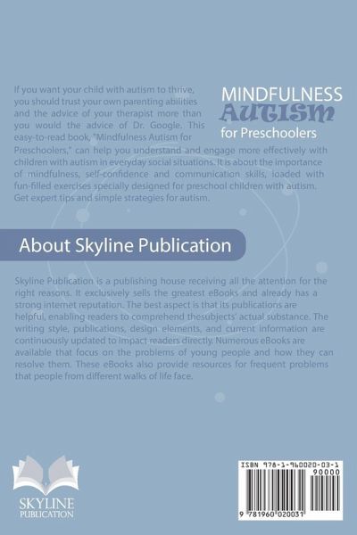Do you often think if your child with autism will ever improve? Do you feel stressed out about ways to handle your child on the spectrum? Are you looking for ways to help your ASD child improve their social skills and emotional well-being? If these are the questions in your mind at the moment, then this book is for you. This book, "Mindfulness autism with preschoolers," will find ways to help your preschooler deal with circumstances such as initiating a conversation and coping with anxiety when they are not feeling confident with the help of mindfulness activities specifically designed for their age. This book will help children strengthen their social skills and teach them how to take care of their emotional well-being by encouraging them to express their feelings through the exercises in this book, which will significantly benefit them. It is not just a list of things you should and should not do. Assistance is provided for parents and other caregivers of autistic children. The parents of autistic children will feel more confident in their ability to care for their child after reading this book. This book has following information that you will definitely enjoy. ¿ What is autism? ¿ Early signs of autism ¿ Mindfulness for children with autism ¿ Ways to develop confidence in your child with autism ¿ Learn to enhance your child's communication skills Do not waste any further time. BUY NOW! and help your child thrive more peacefully in this world.