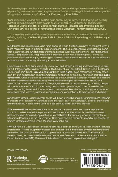 Compassion involves both sensitivity to our own and others' suffering and the courage to deal with it. Integrating the work of experts in the field such as Paul Gilbert, Kristin Neff, Christopher Germer and Tara Brach, Erik van den Brink and Frits Koster have established an eight stage step-by-step compassion training programme, supported by practical exercises and free audio downloads, which builds on basic mindfulness skills. Grounded in ancient wisdomand modern science, they demonstrate how being compassionate shapes our minds and brains, and benefits our health and relationships. The programme will be helpful to many, including people with various types of chronic or recurring mental health problems, and can be an effective means of coping better with low self-esteem, self-reproach or shame, enabling participants to experience more warmth, safeness, acceptance and connection with themselves and others.