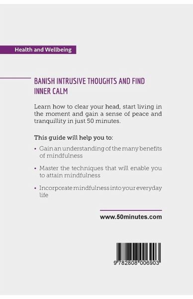 Change is only 50 minutes away! Find out everything you need to know about mindfulness with this straightforward guide. The tradition of mindfulness dates back centuries, but it is mired in misconceptions and misunderstandings. In reality, anyone can attain a state of mindfulness if they are prepared to work towards it, and in doing so they will unlock inner calm, a sense of perspective and greater emotional control. In this concise book, you will learn the basic techniques you need to get rid of intrusive, overwhelming thoughts and start living in the moment. In just 50 minutes you will be able to: ¿ Understand what mindfulness is and how it can benefit you ¿ Master the meditation, relaxation and breathing techniques that will enable you to attain a state of mindfulness ¿ Start practising mindfulness every day and make it a regular part of your life ABOUT 50MINUTES.COM HEALTH AND WELLBEING The Health and Wellbeing series from the 50Minutes collection is perfect for anyone looking to be healthier and happier in their personal life. Our guides cover a range of topics, from social anxiety to getting ready for a new baby, and provide simple, practical advice and suggestions to allow you to reduce stress, strengthen your relationships and increase your wellbeing.