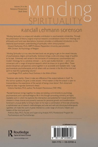 In Minding Spirituality, Randall Sorenson, a clinical psychoanalyst, "invites us to take an interest in our patients' spirituality that is respectful but not diffident, curious but not reductionistic, welcoming but not indoctrinating." Out of this invitation emerges a fascinating and broadening investigation of how contemporary psychoanalysis can "mind" spirituality in the threefold sense of being bothered by it, of attending to it, and of cultivating it. Both the questions Sorenson asks, and the answers he begins to formulate, reflect progressive changes in the psychoanalytic understanding of spirituality. Sorenson begins by quantitatively analyzing 75 years of journal literature and documenting how psychoanalytic approaches to religious and spiritual experiences have evolved far beyond the "wholesale pathologizing of religion" prevalent during Freud's lifetime. Then, in successive chapters, he explores and illustrates the kind of clinical technique appropriate to the modern treatment of religious issues. And the issue of technique is consequential in more than one way -- Sorenson presents evidence that how analysts work clinically has a greater impact on their patients' spirituality than the patients' own parents have. Sorenson brings an array of disciplinary perspectives to bear in examining the multiple relationships among psychoanalysis, religion, and spirituality. Empirical analysis, psychoanalytic history, sociology of religion, comparative theory, and sustained clinical interpretation all enter into his effort to open a dialogue that is clinically relevant. Turning traditional critiques of psychoanalytic training on their head, he argues that psychoanalytic education has much to learn from models of contemporary theological education. Beautifully crafted and engagingly written, Minding Spirituality not only invites interdisciplinary dialogue but, via Sorenson's wide-ranging and passionately open-minded scholarship, exemplifies it.