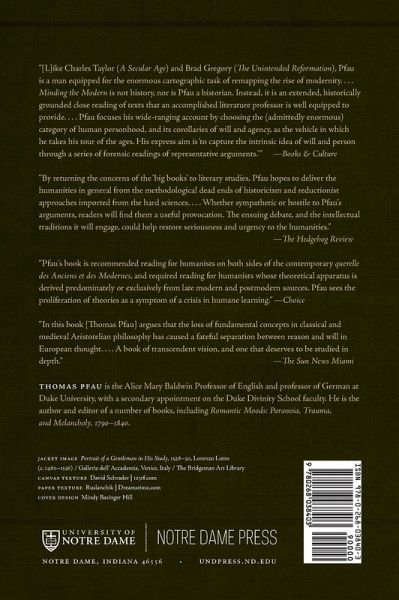 In this brilliant study, Thomas Pfau argues that the loss of foundational concepts in classical and medieval Aristotelian philosophy caused a fateful separation between reason and will in European thought. Pfau traces the evolution and eventual deterioration of key concepts of human agency-will, person, judgment, action-from antiquity through Scholasticism and on to eighteenth-century moral theory and its critical revision in the works of Samuel Taylor Coleridge. Featuring extended critical discussions of Aristotle, Gnosticism, Augustine, Aquinas, Ockham, Hobbes, Shaftesbury, Mandeville, Hutcheson, Hume, Adam Smith, and Coleridge, this study contends that the humanistic concepts these writers seek to elucidate acquire meaning and significance only inasmuch as we are prepared positively to engage (rather than historicize) their previous usages. Beginning with the rise of theological (and, eventually, secular) voluntarism, modern thought appears increasingly reluctant and, in time, unable to engage the deep history of its own underlying conceptions, thus leaving our understanding of the nature and function of humanistic inquiry increasingly frayed and incoherent. One consequence of this shift is to leave the moral self-expression of intellectual elites and ordinary citizens alike stunted, which in turn has fueled the widespread notion that moral and ethical concerns are but a special branch of inquiry largely determined by opinion rather than dialogical reasoning, judgment, and practice. A clear sign of this regression is the present crisis in the study of the humanities, whose role is overwhelmingly conceived (and negatively appraised) in terms of scientific theories, methods, and objectives. The ultimate casualty of this reductionism has been the very idea of personhood and the disappearance of an adequate ethical language. Minding the Modern is not merely a chapter in the history of ideas; it is a thorough phenomenological and metaphysical study of the roots of today's predicaments.