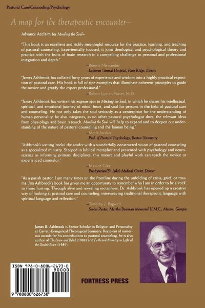 Ministers, priests, rabbis, physicians, and therapists faced with their awesome role will appreciate Ashbrook's clear way of integrating medicine, psychology, and theology into a consistent framework for therapeutic practice. Part One unfolds the dimensions of being humanphysiological, depth-psychological, interpersonalto show how patterns of mere survival can be changed to patterns of growth. Part Two describes how to engage the souls of people in pain. It offers specific, step-by-step techniques to enable people psychically to turn again to life. Part Three presents the fuller picture of meaning-making activitysoul-making-that is the heart of human life, beginning with the counselor's own.