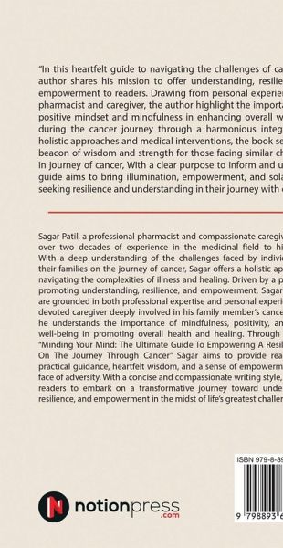 "In this heartfelt guide to navigating the challenges of cancer, the author shares his mission to offer understanding, resilience, and empowerment to readers. Drawing from personal experiences as a pharmacist and caregiver, the author highlight the importance of a positive mindset and mindfulness in enhancing overall well-being during the cancer journey through a harmonious integration of holistic approaches and medical interventions, the book serves as a beacon of wisdom and strength for those facing similar challenges in journey of cancer, With a clear purpose to inform and uplift, this guide aims to bring illumination, empowerment, and solace to all seeking resilience and understanding in their journey with cancer."