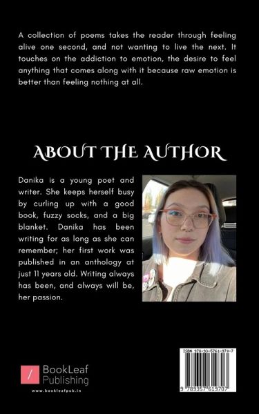 A collection of poems takes the reader through feeling alive one second, and not wanting to live the next. It touches on the addiction to emotion, the desire to feel anything that comes along with it because raw emotion is better than feeling nothing at all.